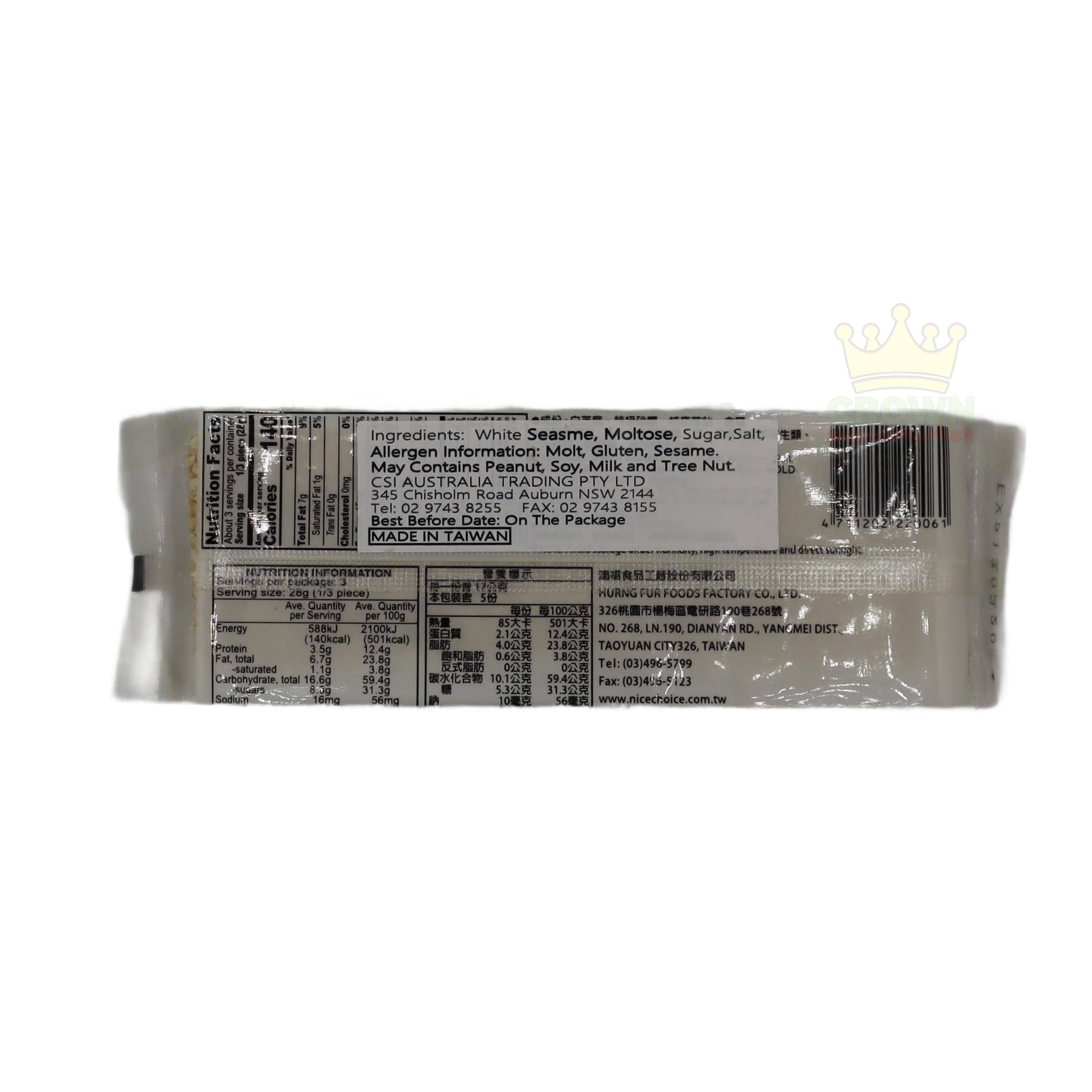 Nice Choice White Sesame Cake 100g is a traditional-style snack crafted from premium white sesame seeds, offering a rich, nutty aroma and a lightly sweet flavor. Each bite delivers a crisp yet tender texture, highlighting the natural oils and subtle toastiness of the sesame. Made with simple, quality ingredients, this sesame cake is perfect for enjoying as a light treat with tea or coffee, or for sharing during gatherings. Its compact 100g packaging makes it easy to take on the go or to keep on hand for whenever you crave a wholesome, nostalgic snack. A delicious way to enjoy the timeless taste of sesame in every bite.