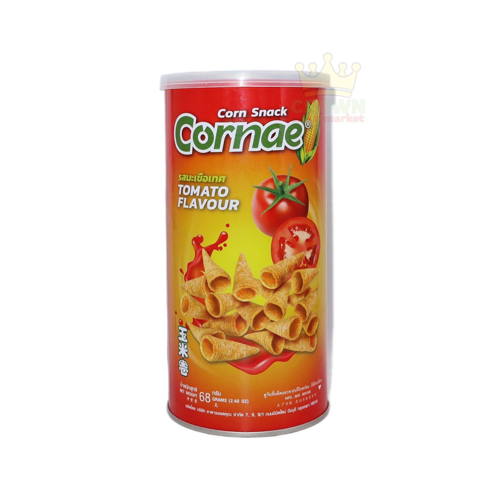Satisfy your snack cravings with the tangy and savory goodness of Cornae Corn Snack Tomato Flavour. This 68g pack is filled with light and crispy corn snacks infused with the rich taste of ripe tomatoes and a delightful touch of seasoning. Each bite delivers a perfect combination of crunch and bold flavor, making it a favorite for both kids and adults.